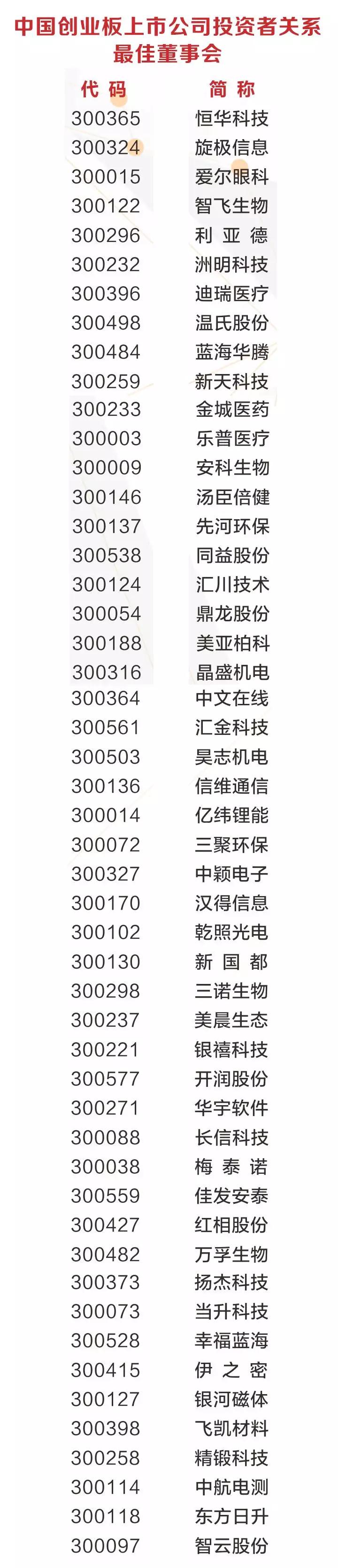 三是通过投资者关系完善公司治理结构,实现公司价值与投资者回报双赢。在获得本届中小板、创业板最佳董事会奖项的百家公司当中,数据显示,自上市以来至2018年4月18日,股价涨幅超1000%的公司有13家,苏宁易购、美年健康、苏泊尔、华帝股份、东方雨虹、大华股份、康得新、利亚德、旋极信息等公司实现了高增长。