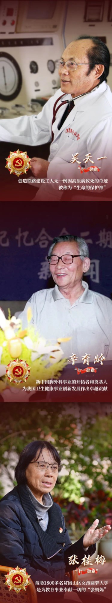 在中国共产党成立100周年之际,党中央首次评选颁授“七一勋章”,隆重表彰一批为党和人民作出杰出贡献、创造宝贵精神财富的党员。向29名“七一勋章”获得者致敬!